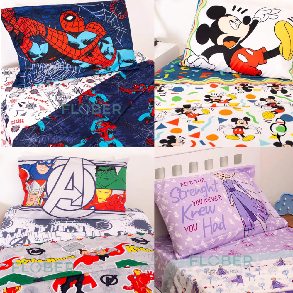 Juego de Sábanas completo confeccionadas en tela Microfibra PREMIUM ULTRASOFT con estampas de personajes infantiles.