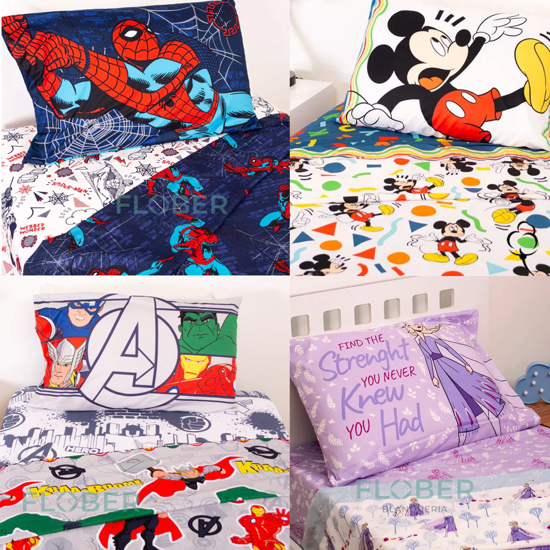 Juego de Sábanas completo confeccionadas en tela Microfibra PREMIUM ULTRASOFT con estampas de personajes infantiles.