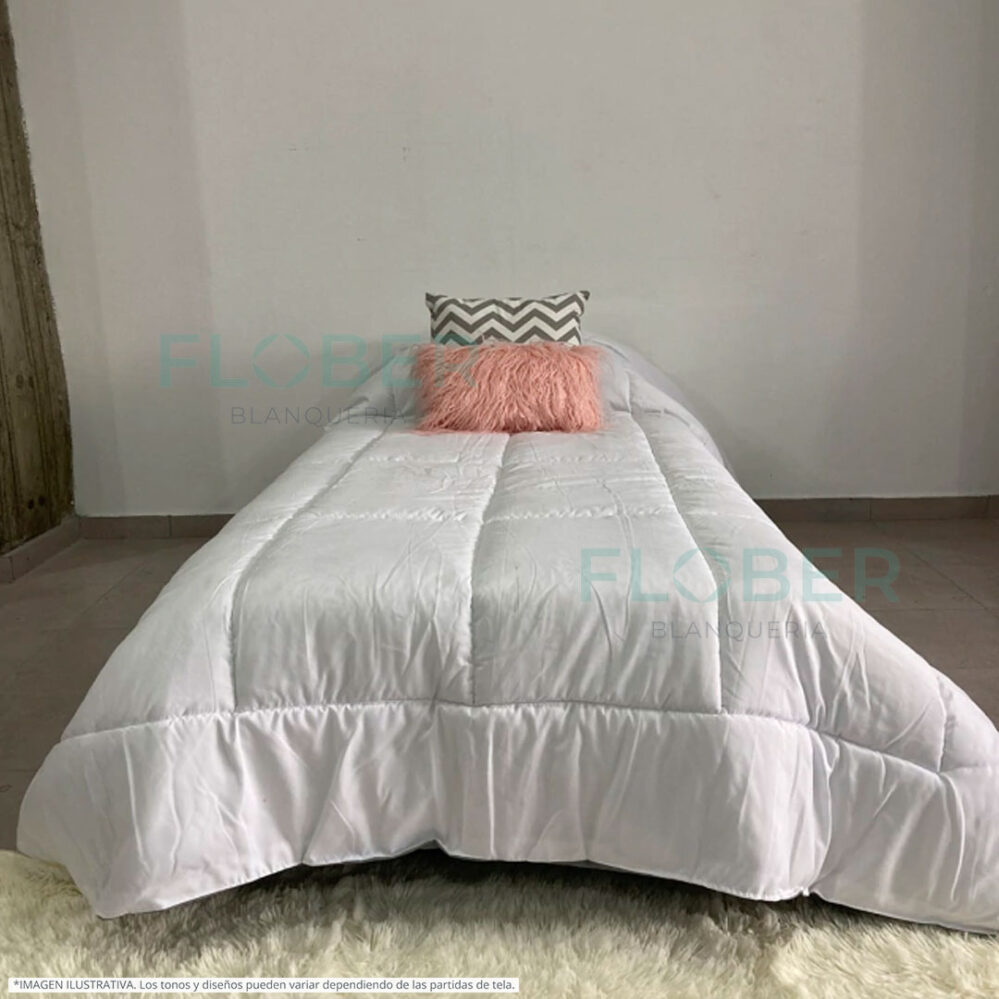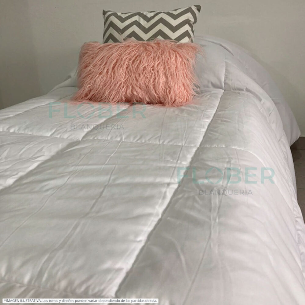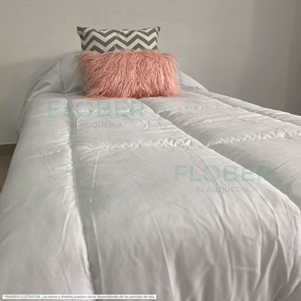 Acolchado Edredón SIMIL PLUMON confeccionados en tela Microfibra y rellenos con 150grs. de fibra de guata virgen hipoalergénica.